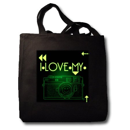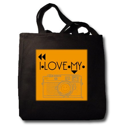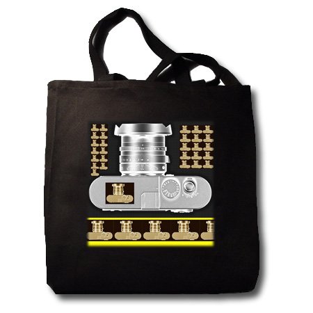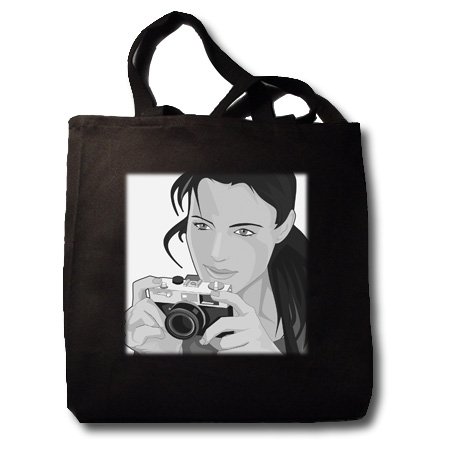 Young woman photographs using a rangefinder camera Tote Bag is commercial quality high resolution heat transfer product. This versatile tote bag is perfect for school, errands, or trips to the beach. Comes with 12-ounce cotton twill, cotton web handles.